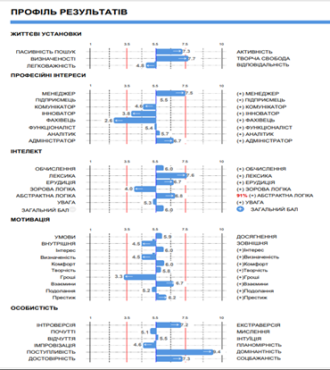 • Перелік життєвих установок, професійних інтересів, здібностей, професійної мотивації та особистісних якостей
